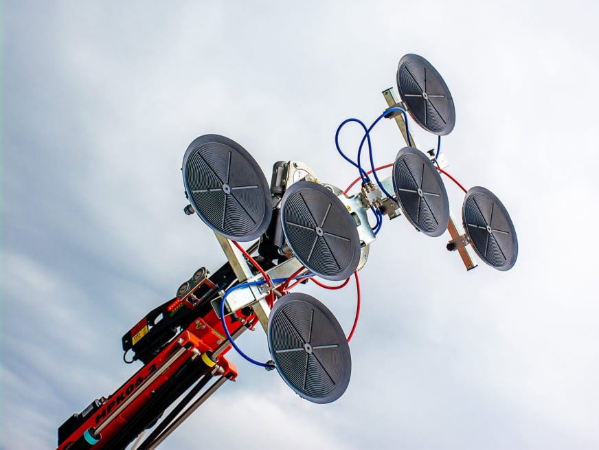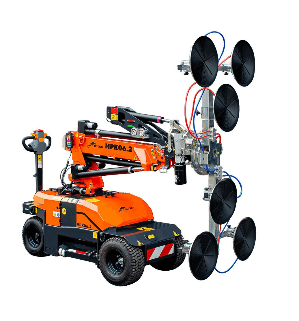 With the independent vacuum manipulator JVM800, the crane becomes a pick & carry glazing robot.