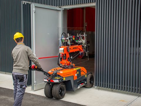 MPK10.2 is not only a glass installation robot! With hook and adjustable searcher hook, MPK10.2 is a 2,180 lbs pick & carry electric crane with a long-duration battery ideal for emission-free and noise-free indoor liftings. With its compact size it fits neatly through narrow access points.