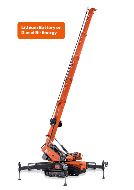 SPX328 is the right solution when spaces are really tight. With only 2′ 5” width, this mini crawler crane can fit where others wouldn’t even imagine. Lithium battery operated, SPX328 is ideal for indoor use and sensitive environments, with top performance and zero emissions. Its user-friendly design makes it so easy and intuitive to operate that even non-experts can handle it with confidence. Whether you’re working in construction, maintenance, or industrial settings, this electric mini crane ensures safe, silent, and sustainable lifting.
